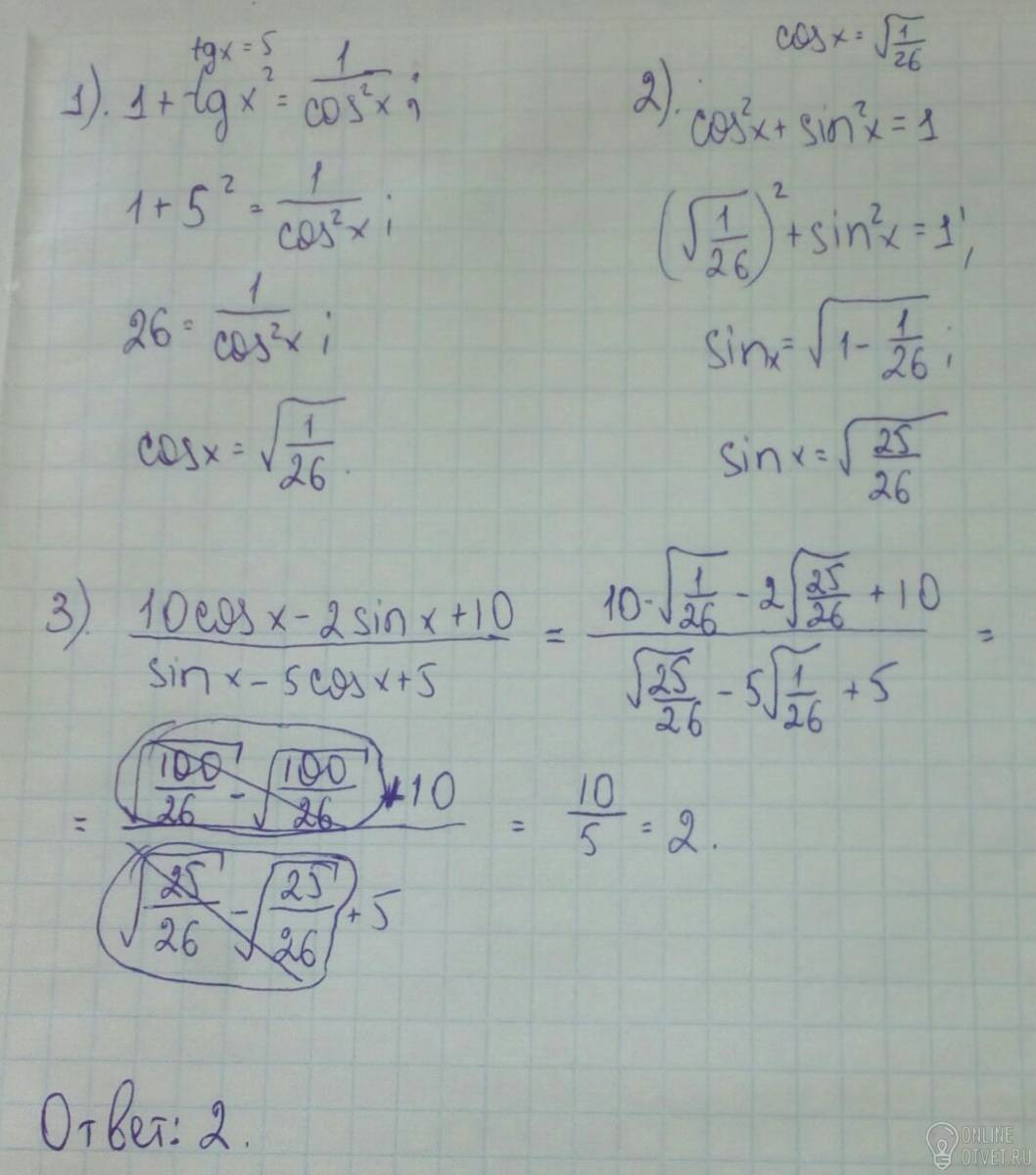 Найдите (10cosx-2sinx+10)/(sinx-5cosx+5), если tgx=5