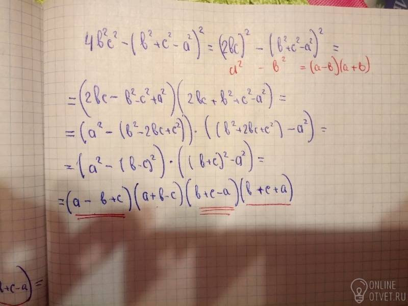 Помогите! Доказать тождество 4b²c² - (b² + c² - a²)² = (a + b + c)(a - b + c)(b + c - a)