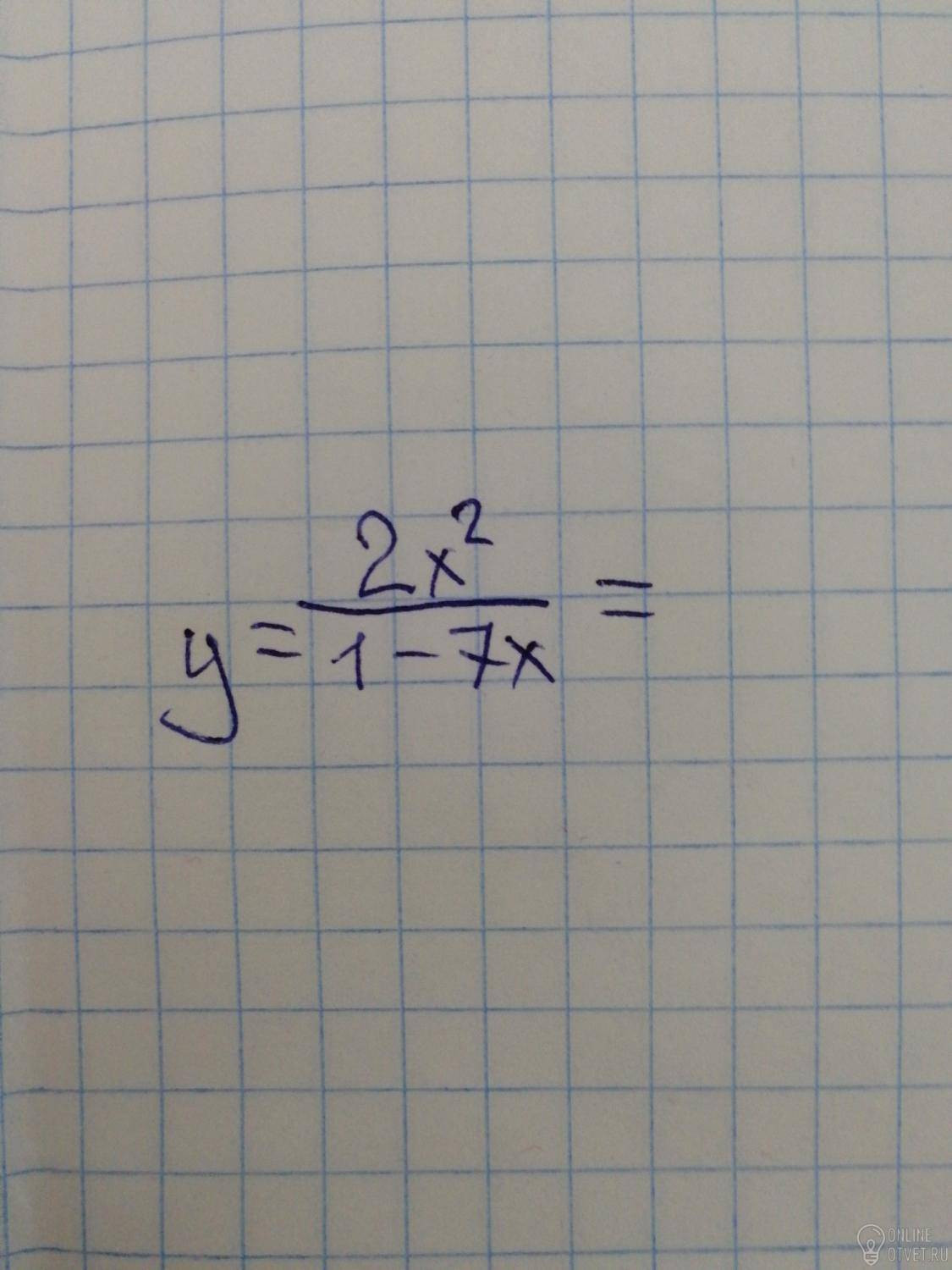 Y'=((2x^2)' *(1-7x)-2x^2*(1-7x)')/(1-7x)^2=(4x(1-7x)-2x^2*(-7))/(1-7x)^2=(4x-28x+14x^2)/(1-7x)^2=(14x^2-24x)/(1-7x)^2