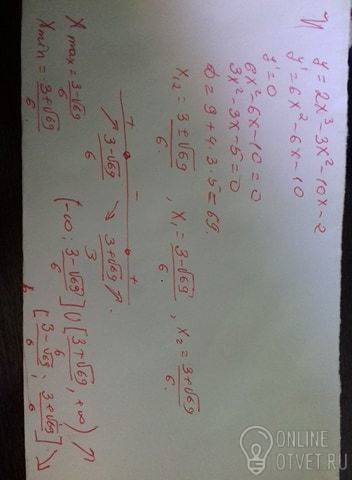 Найдите интервал монотонности и точки экстремума функции с помощью производной для функции: y=2x³-3x²-10x-2