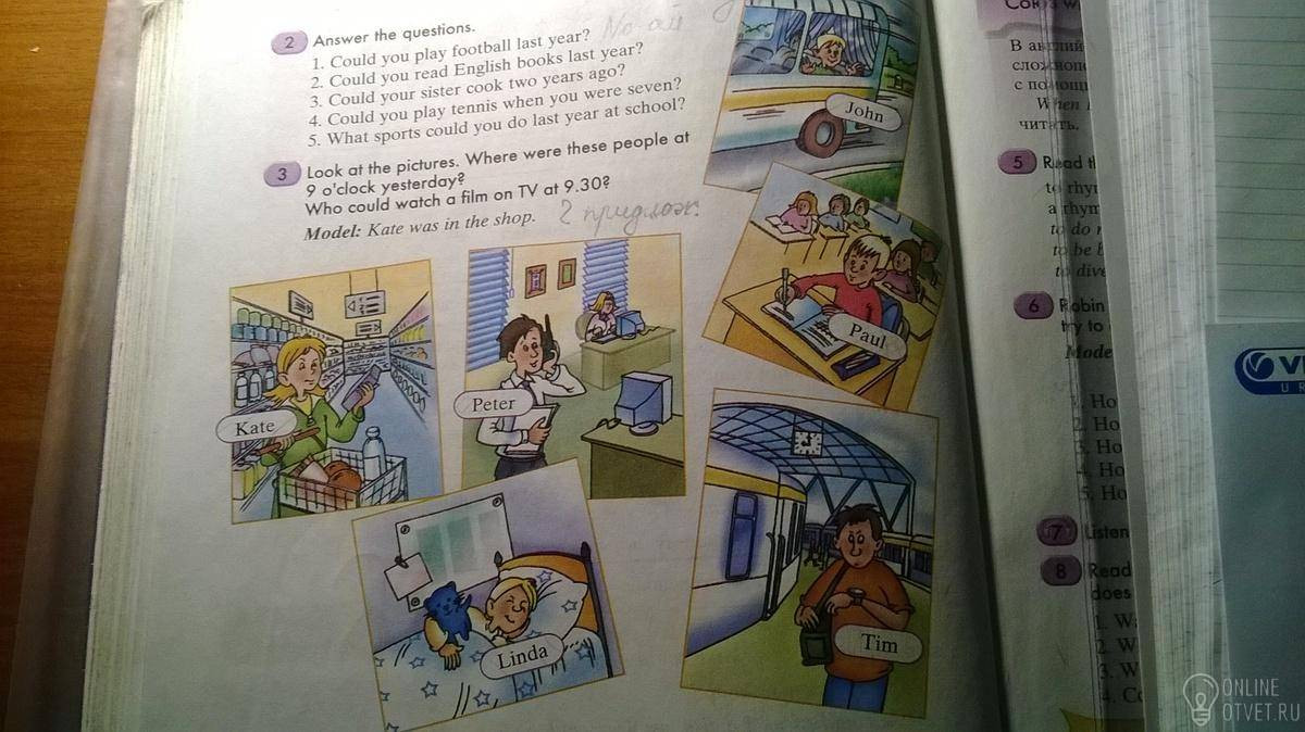 Посмотрите на фотографии. Где были эти люди в 9 o'clock Look на фотографии. Где вчера были эти люди в 9 часов? Кто бы мог посмотреть фильм по телевизору в 9.30?