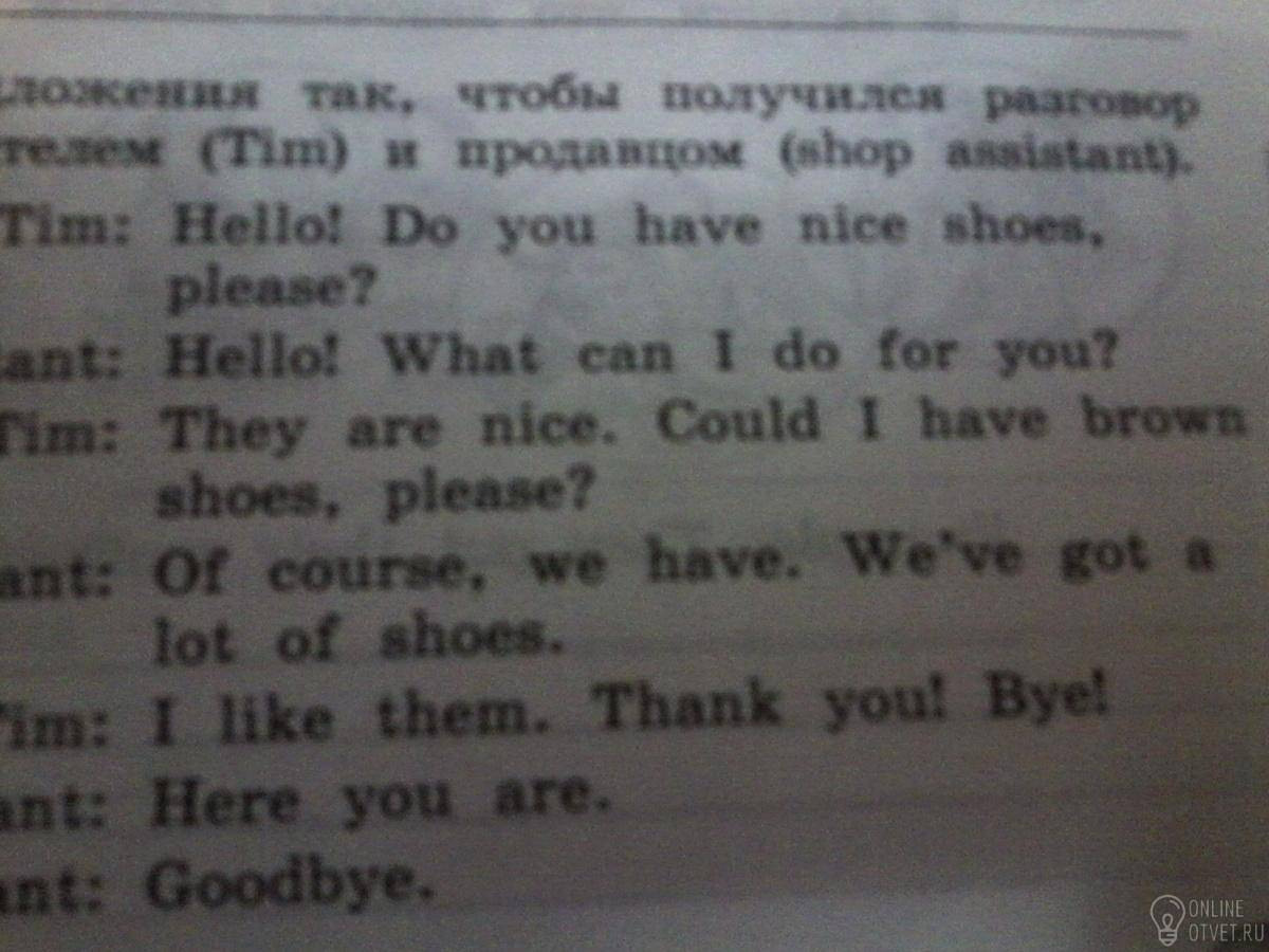 Тим: Здравствуйте! У вас есть красивая обувь, пожалуйста?