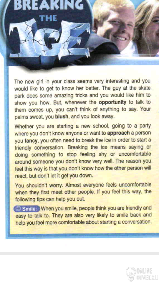 Независимо от того начинаете поступаете ли вы в новую школу, или идёте на вечеринку где вы никого не знаете или хотите подойти к человеку, который вам нравится, вам часто приходится проламывать лёд в целях поддержания дружелюбного разговора. Проломить лёд означает делать или говорить что-то, чтобы устранить неловкость перед тем, кого вы ещё не очень хорошо знаете. Причина по которой вы так себя чувствуете - это то, что вы ещё недостаточно хорошо знаете как человек будет реагировать, но не позволяйте этому сломить вас.