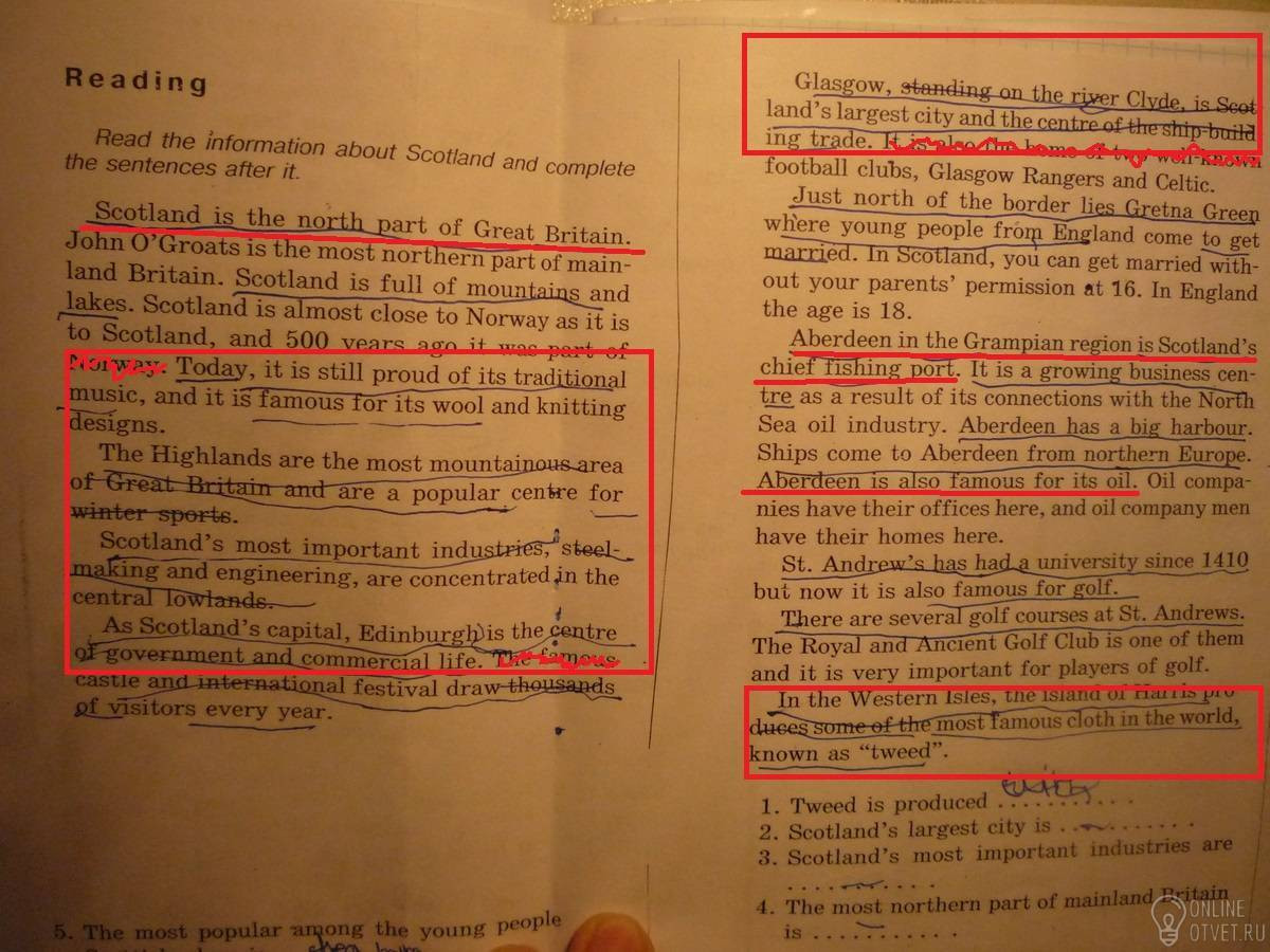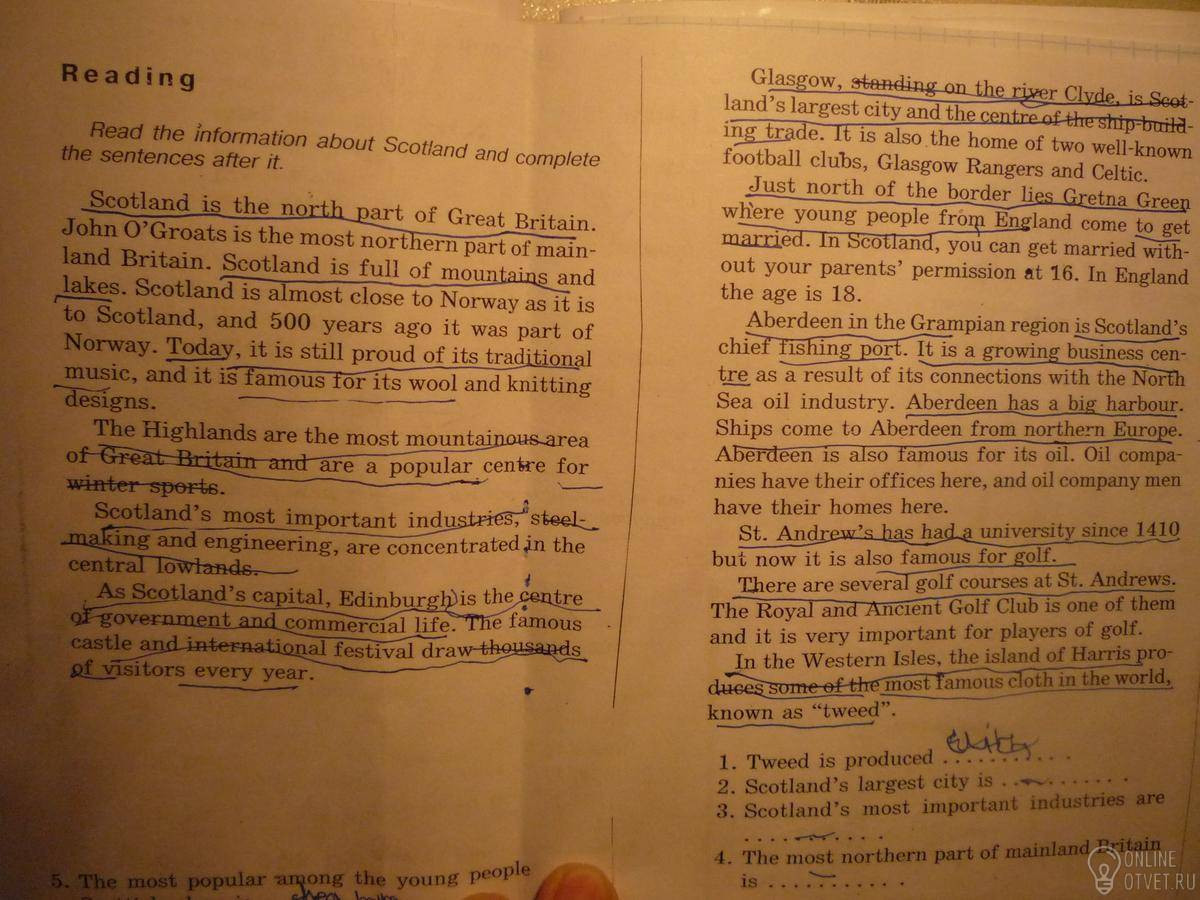 Шотландия - северная часть Великобритании. До сих пор гордится своей национальной музыкой, так же известна своими шерстеными изделиями и вязаными вещами. Северо-Шотландское нагорье – самая горная местность Великобритании и популярный центр зимнего спорта. Самые важные производства Шотландии – производство стали и машиностроением, которые сосредоточены в центре низких местностей (низменностях). Так же столица Шотландии Эдинбург является центром правительства и торговли. Глазго расположен на реке Клайд, самый огромный город и центр судостроительного ремесла. Абердин в грампианском регионе в Шотландии - главный рыболовецкий порт. Так же Абердин известен своим маслом. На западных островах, остров Харрис производит самую известную одежду(вещь) в мире, которая известна как твид(шерстяная ткань).