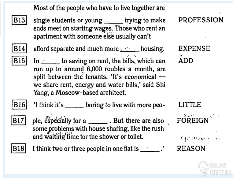 «Прочитайте приведенный ниже текст. Преобразуйте слова, напечатанные заглавными буквами в конце строк, обозначенных номерами В13-В18 так, чтобы они грамматически и лексически соответствовали содержанию текста…»