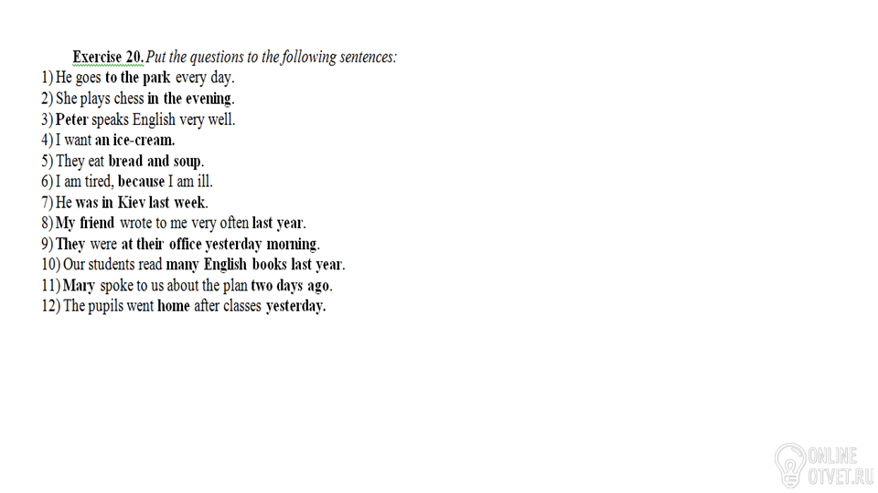 12) Where did the pupils go after classes yesterday? When did the pupils go home after classes?