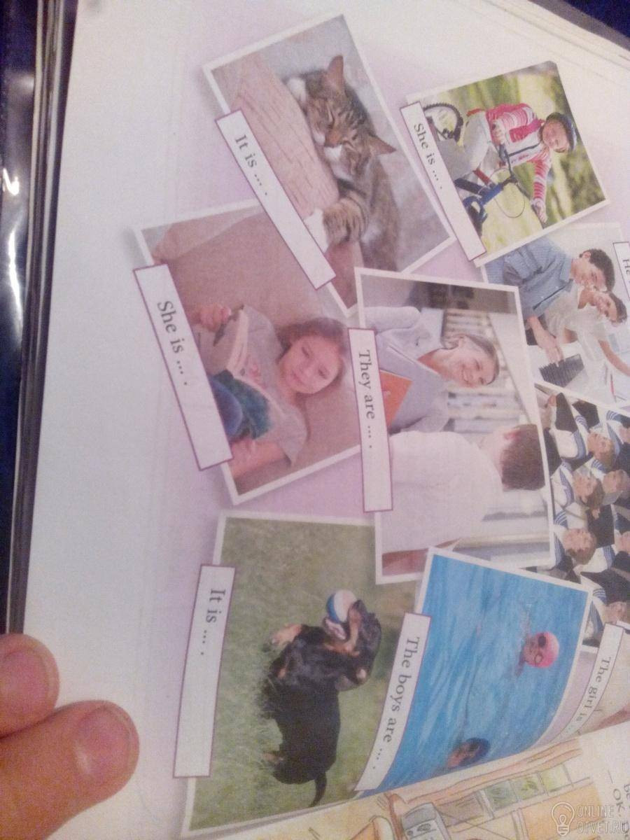 1) It is sleeping; 2) She is reading; 3) It is playing with a ball; 4) They are talking; 5)The boys are swimming; 6) She is riding a bike