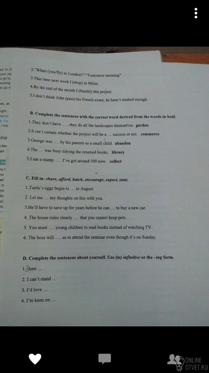 Не нашли подходящего ответа на вопрос или ответ отсутствует? Воспользуйтесь поиском по сайту, чтобы найти все ответы на похожие вопросы в разделе Английский язык.