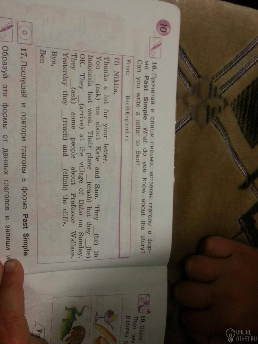 You asked me about Kate and Sam. They were in Indonesia last week. Their plane crashed but they were OK. They arrived at the village of Dabo on Sunday. They asked some people about Professor Wallace. Yestarday they reached and climbed the cliffs.