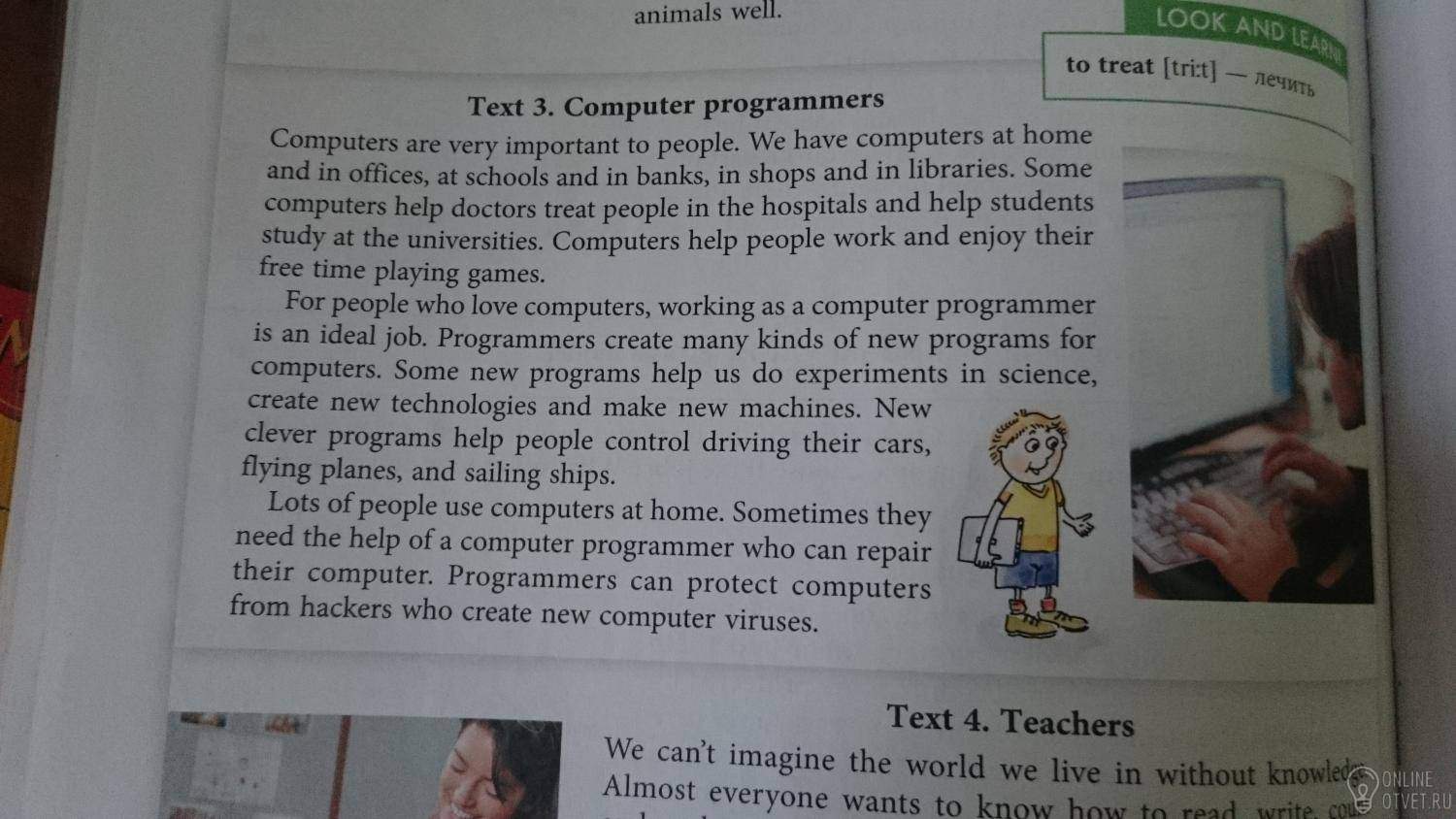 Для людей, которые любят компьютеры, работа компьютерными программистами является идеальной. Программисты создают много видов новых программ для компьютеров. Некоторые новые программы помогают нам проводить эксперименты в науке, создавать новые технологии и новые машины. Новые умные программы помогают людям регулировать управление своих автомобилей, летательных аппаратов и парусных судов.
