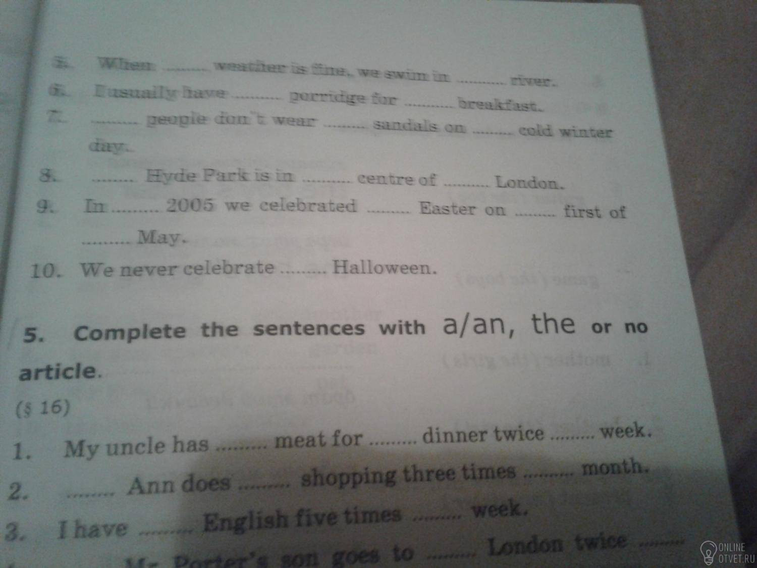 6. Первое пропуск, the, a (at).