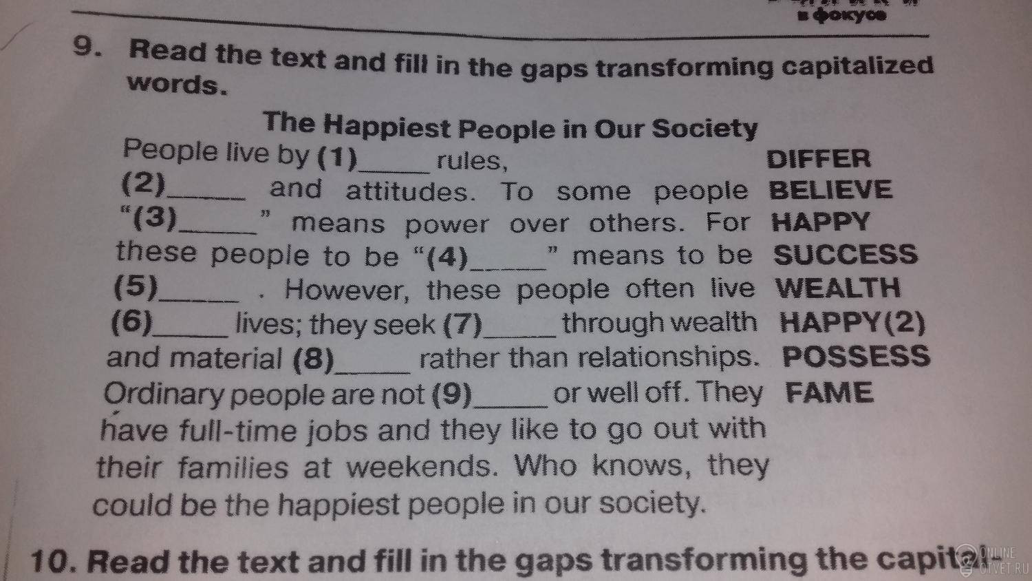 1. Different 2. Beliefs 3. Happiness 4. Successful 5. Wealthy 6. Unhappy 7. Happiness 8. Possession 9. Famous