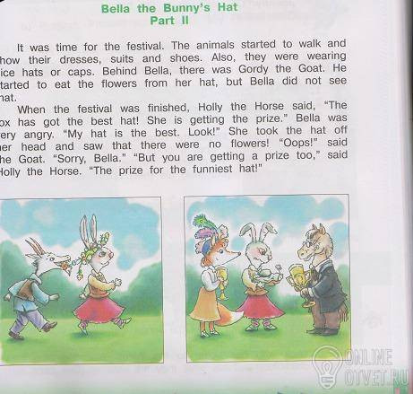 Когда фестиваль закончился, Холли-лошадь сказала: *Лиса имеет лучшую шляпу!*. Белла разозлилась и сказала: *Моя шляпа лучше! Смотри!*. Она сняла свою шляпу и увидела что на ней нет цветов! "Упс"- сказал козел. "Прости, Белла" "Но тебе дадут приз тоже"- сказала Холли-лошадь. Приз за самую смешную шляпу!