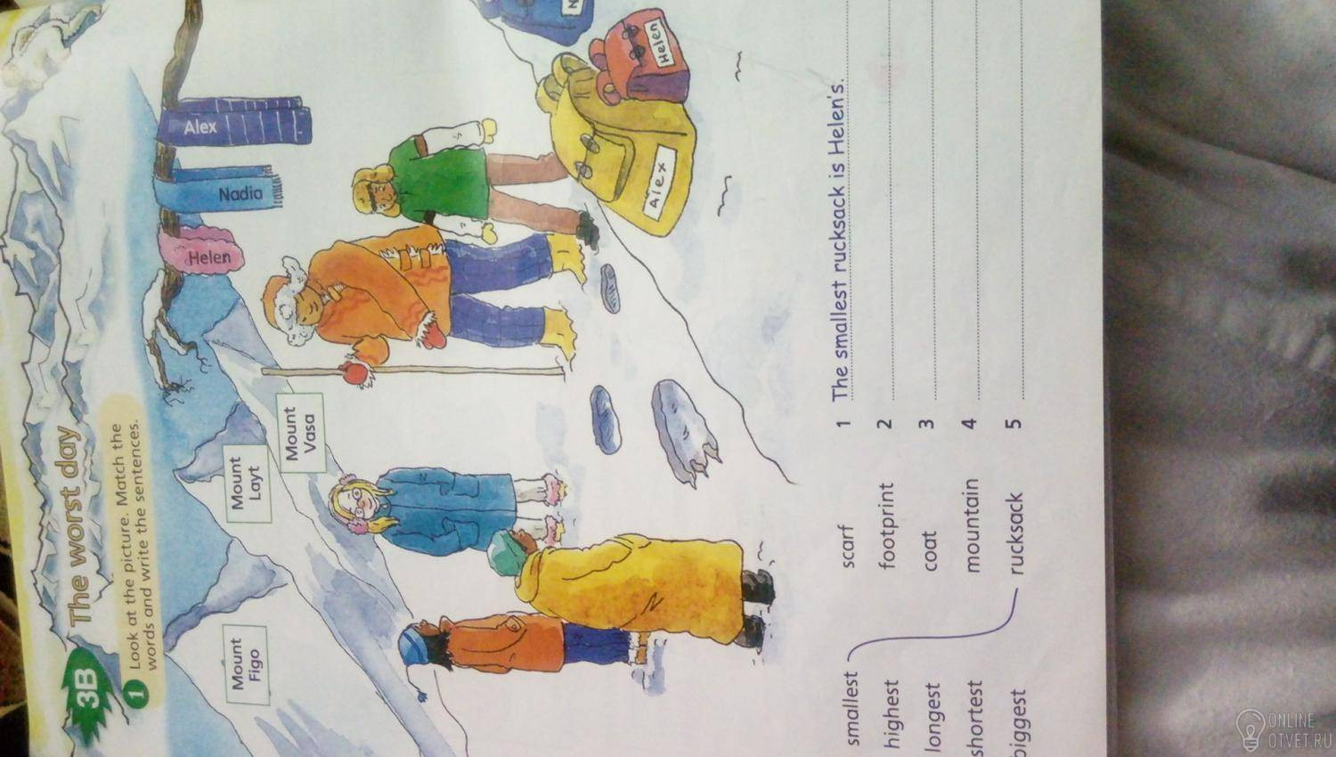 здесь нужно посмотреть на картинку что у тебя здесь написано внизу надо это начертить от слова до слова и это надо написать например что вот рюкзак хэленн это именно ее рюкзак