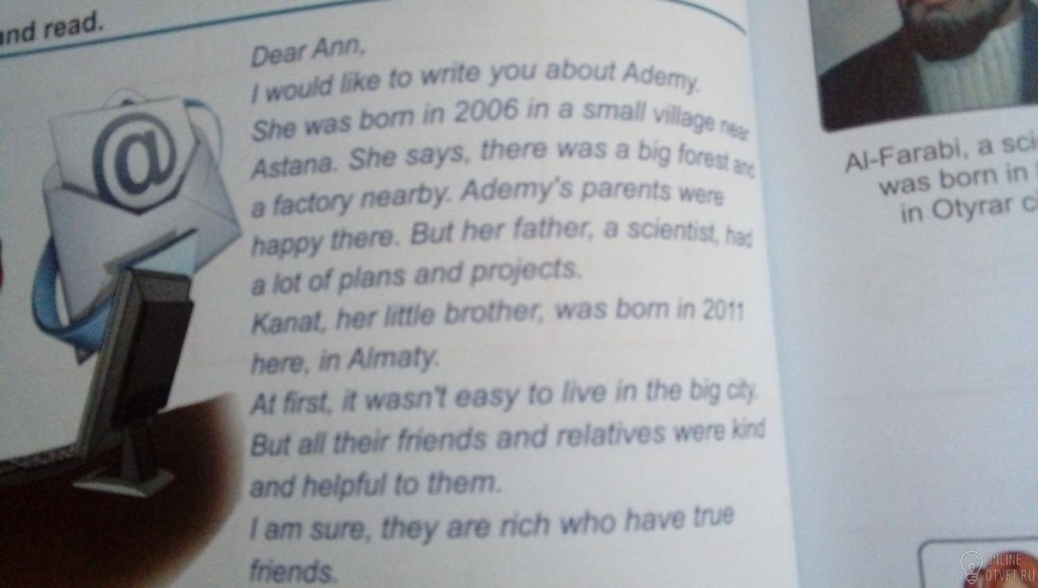 Она родилась в 2006 году в маленькой деревне рядом с Астаной. Она говорит там был большой лес и завод поблизости. Ее родители были счастливы. Но ее папа-учёный, имел много планов и проектов.
