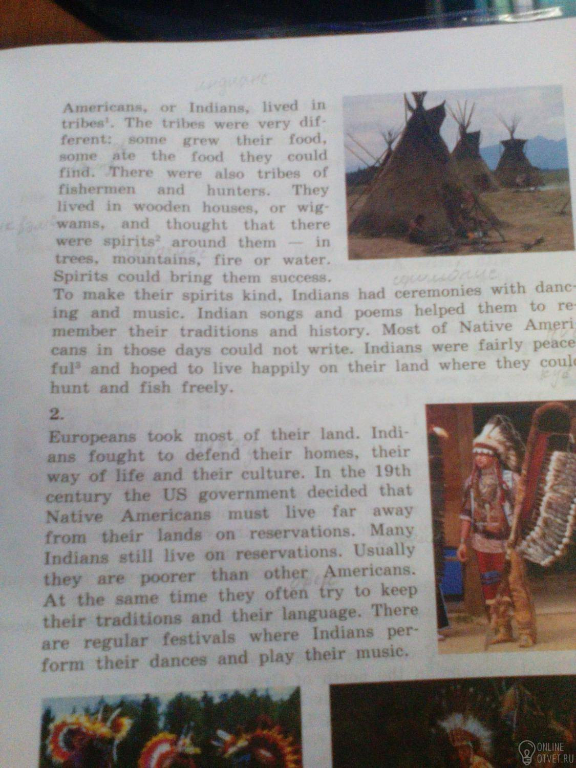 Более чем 20 000 коренных жителей Америки приехали на Американский континент из Азии. Они прошли через всю Сибирь и Аляску. До того, как европейцы прибыли в Америку, коренные Американцы, или индейцы, жили племенами. Племена были разные: некоторые сами выращивали пищу, некоторые питались пищей, которую могли найти. Также существовали племена рыболовов и охотников. Они жили в в домах из дерева - вигвамах, и думали, что вокруг были духи - в деревьях, горах, огне или воде. Духи могли приносить им удачу. Для того, чтобы задобрить духов, индейцы проводили церемонии с танцами и музыкой. Индейские песни и стихотворения помогали им помнить их традиции и историю. Многие коренные жители Америки в те дни не умели писать. Индейцы были сказочно добрыми, они надеялись, что будут жить счастливо на своей земле, на которой они смогут охотиться и ловить рыбу.