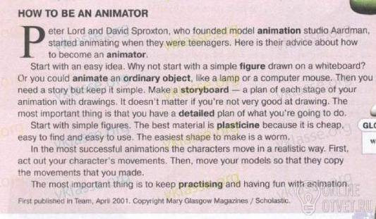[id137718112|Людмила Клевцова],Питер Лорд и Дэвид Спрокстон, который основал модель анимационной студии Aardman, начал анимации, когда они были подростками. Здесь есть свои советы о том, как стать аниматором.