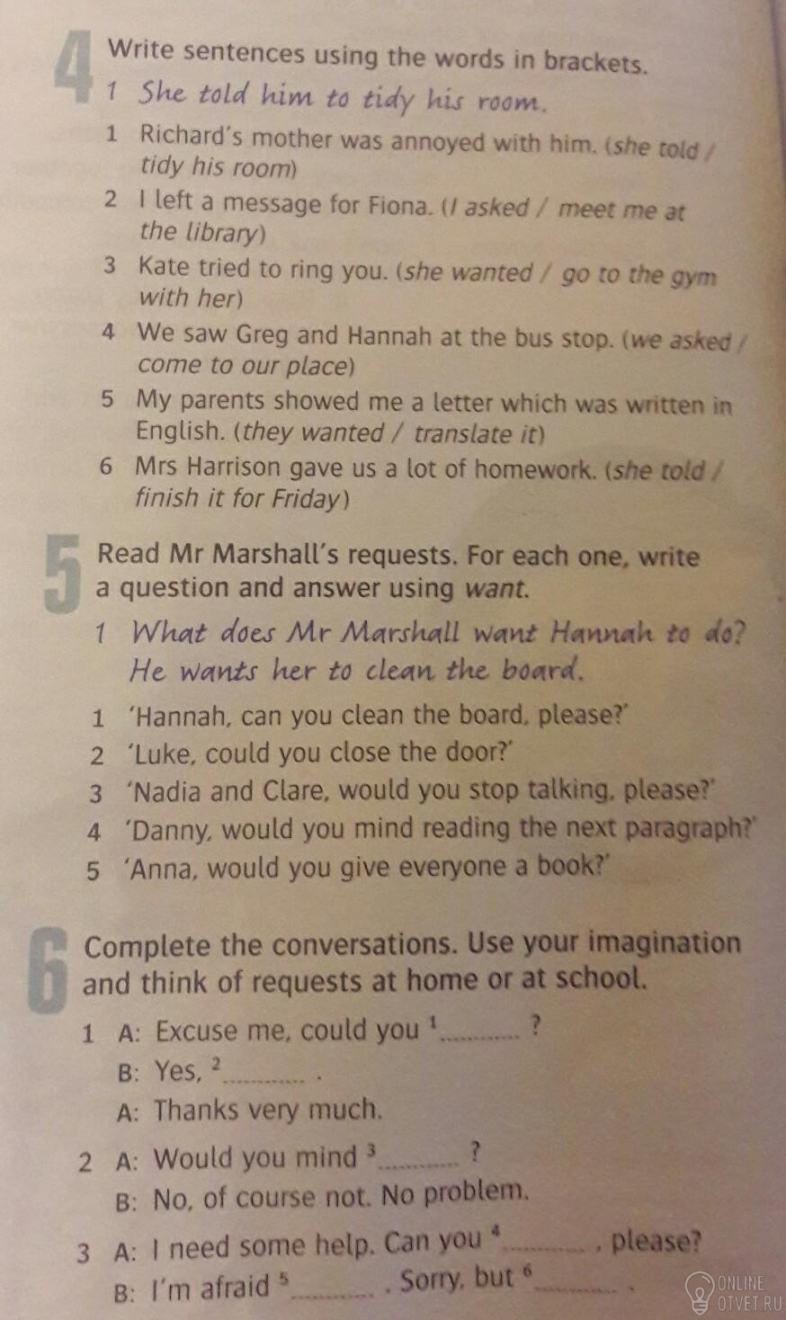 *what did Mr Marshal want Luke to do ? he wanted him to close the door. * what does Mr Marshal want Nadia and Clare to do ? he wants them to stop talking .*what does Mr Marshal want Danny to do ? he wants him to read next paragraph . * what does Mr Marshal want Anna to do ? he wants her to give everyone book.