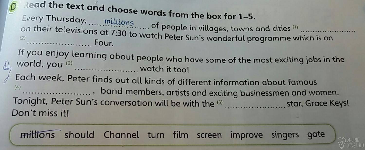 Не нашли подходящего ответа на вопрос или ответ отсутствует? Воспользуйтесь поиском по сайту, чтобы найти все ответы на похожие вопросы в разделе Английский язык.