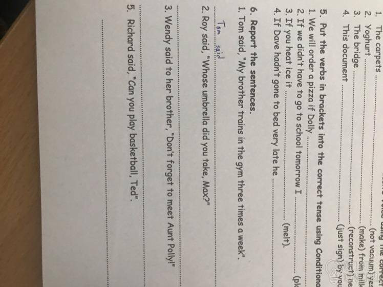 1 Tom said that his brother trained in the gym three times a week.