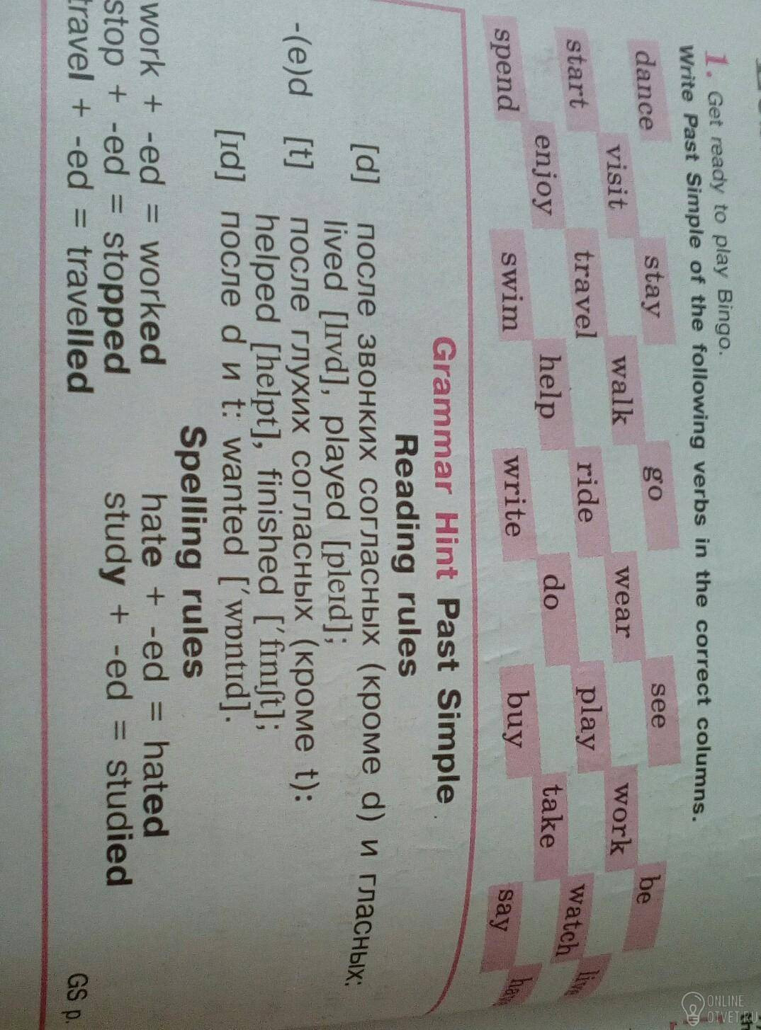 Visited stood started enjoyed swam helped wrote did bought took watched worked sad was/were saw went walked