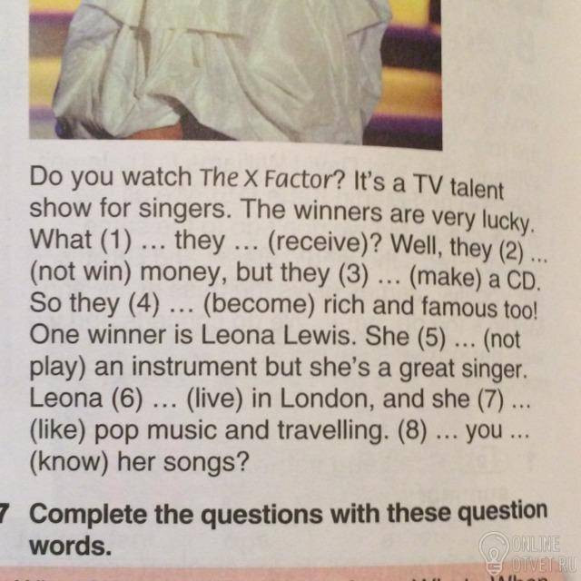 Do you watch The X Factor? Its a TV talent show for singers. The winners are very lucky. What do they receive?Well,they don't win money,but they make a CD. So they will become rich and famous too! One winner is Leona Lewis. She doesn't play an instrument but she's a great singer. Leona lives in London,and she likes pop music and travelling. Do you know her songs?