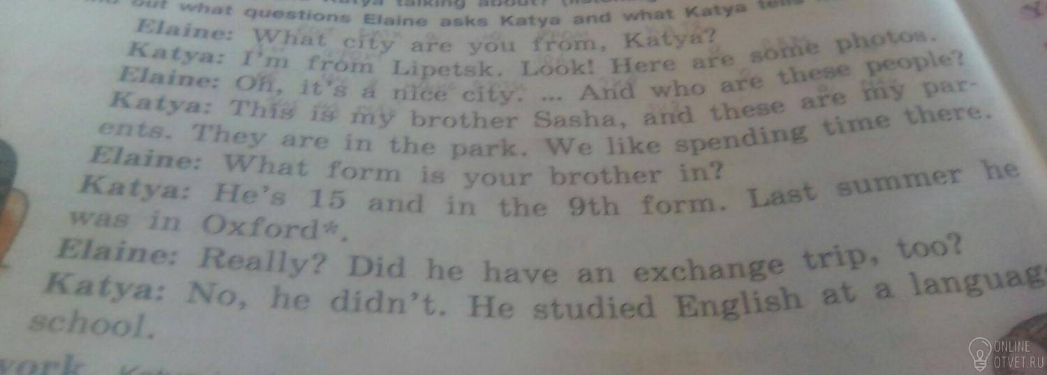 Катя- Ему 15 и он в 9 классе. Прошлым летом он был в Оксфорде.