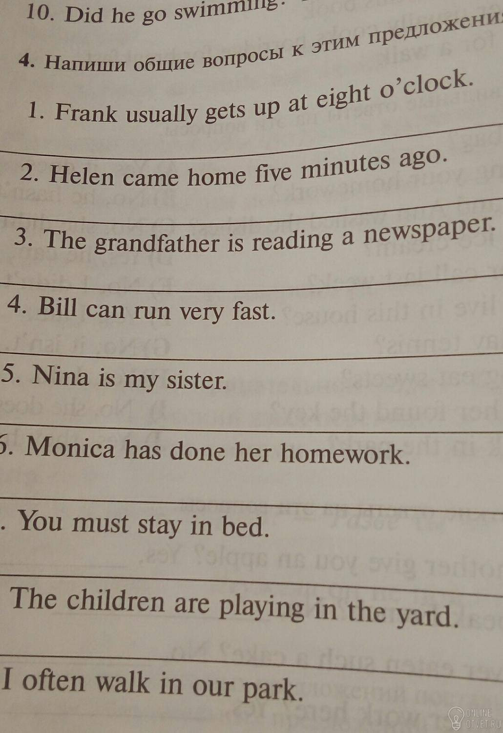 2.did helen come home five minutes ago?