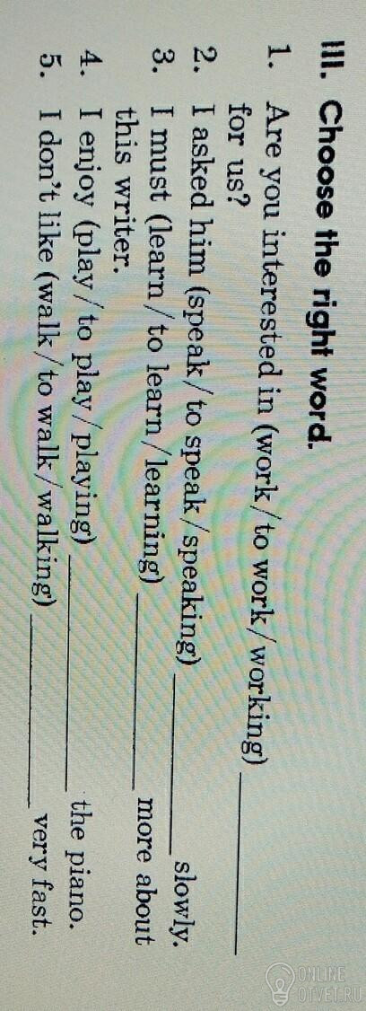 Не нашли подходящего ответа на вопрос или ответ отсутствует? Воспользуйтесь поиском по сайту, чтобы найти все ответы на похожие вопросы в разделе Английский язык.
