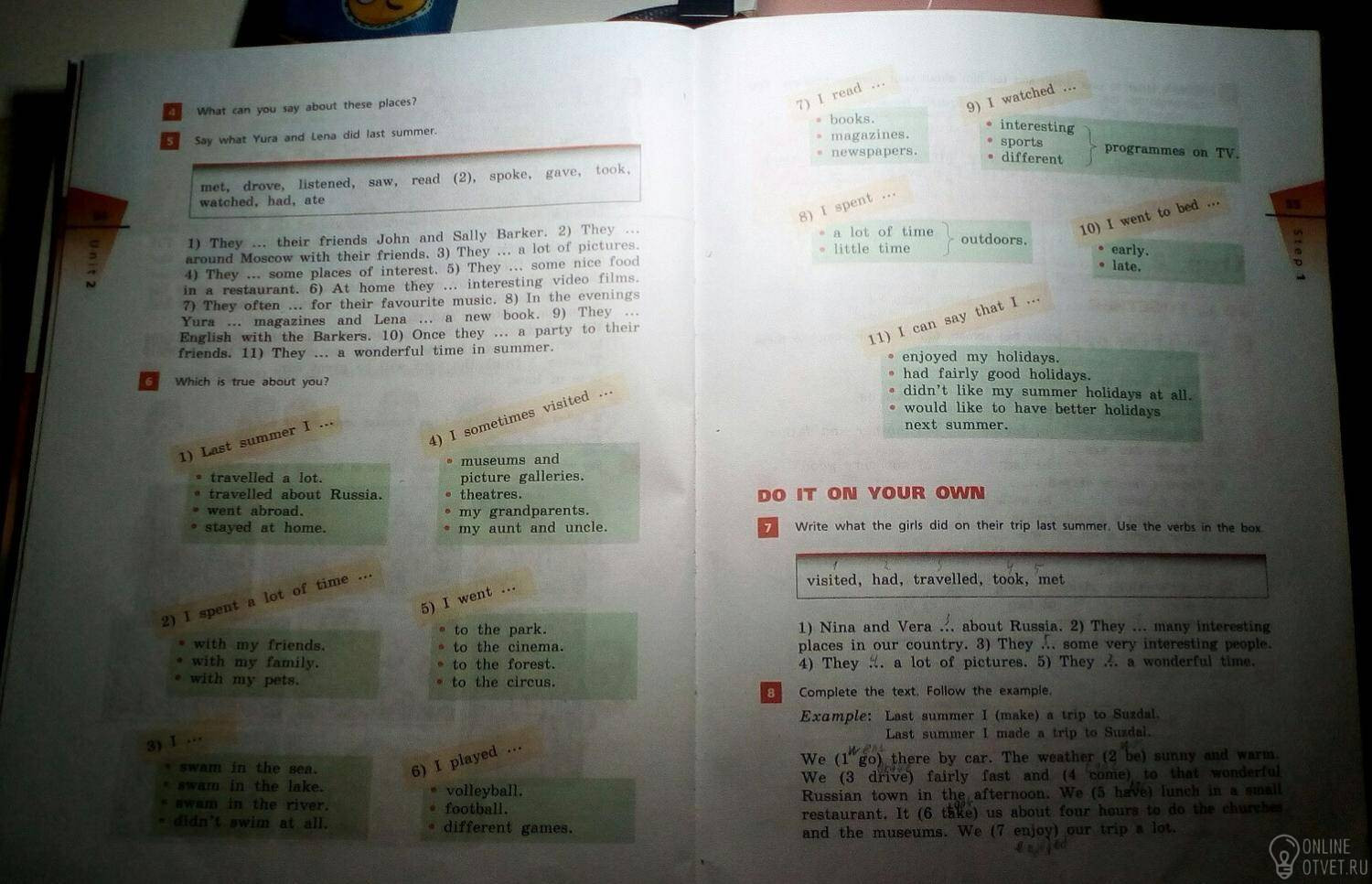 Which is true about you 1) last summer I travelled a lot. 2) I spent a lot of time with my friends. 3) I swam in the sea 4) I sometimes visited theatres. 5) I went to the cinema 6) I played football. 7) I read books. 8) I spent litle time outdoors 9) I watched sports programmeson TV 10) I went to bed late. 11) I can say that I enjoyed my holidays.