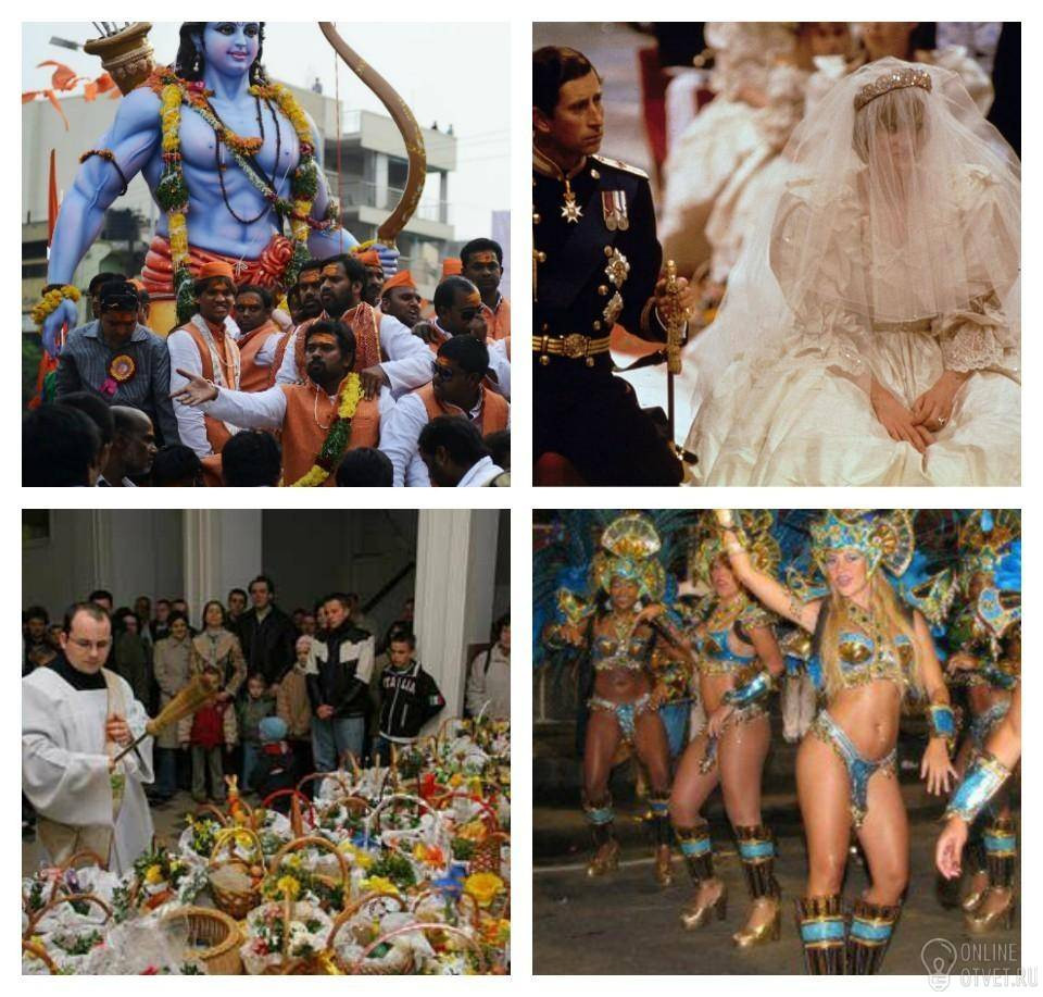 Подивіться на фотографії. Чи є якісь з цих подій вам знайомі? Які слова приходять на ваш розум, пов'язані з цими картинками?Як ви думаєте, що відбувається на кожній події?Які фестивалі або особливі випадки відзначаються у вашій країні?