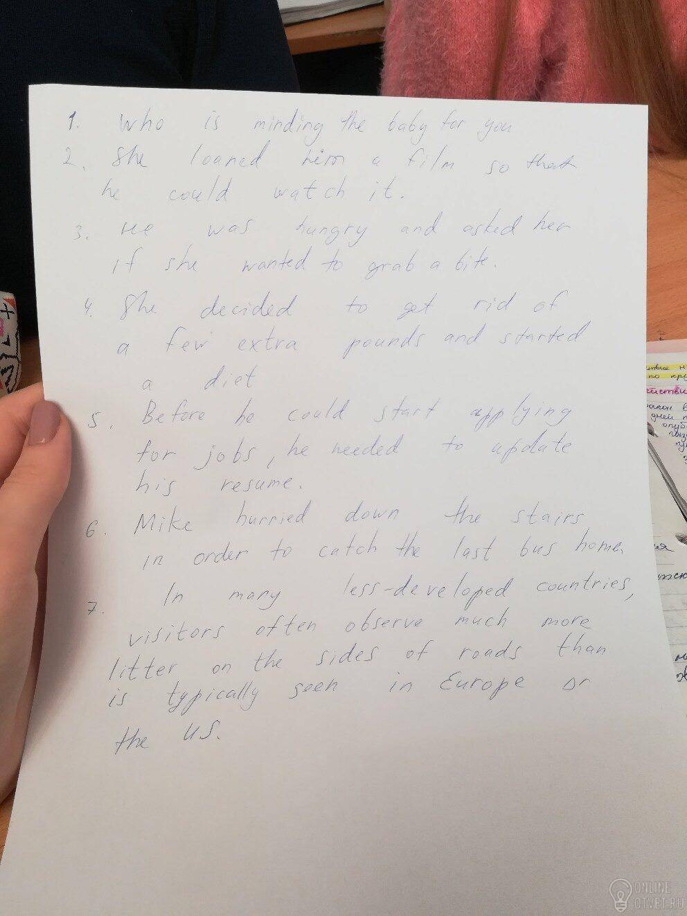 Дословно:1) Кто заботился о ребенке ради тебя?2) Она дала ему фильм чтобы он мог посмотреть этот фильм.З) Он был голоден и попросил её дать ему кусок.4) Она решила немного сбросить лишние килограммы и начать диету.5) До тех пор когда он будет что то применять на работе, он должен обновить конспект6) Майк поспешно сошел по лестнице и попытался поймать последний автобус.7) Из многих менее развитых стран посетители довольно часто наблюдают мусор по сторонам от дороги это обычно видно в Европе и в Соединенных Штатах.Более-менее правильно :)