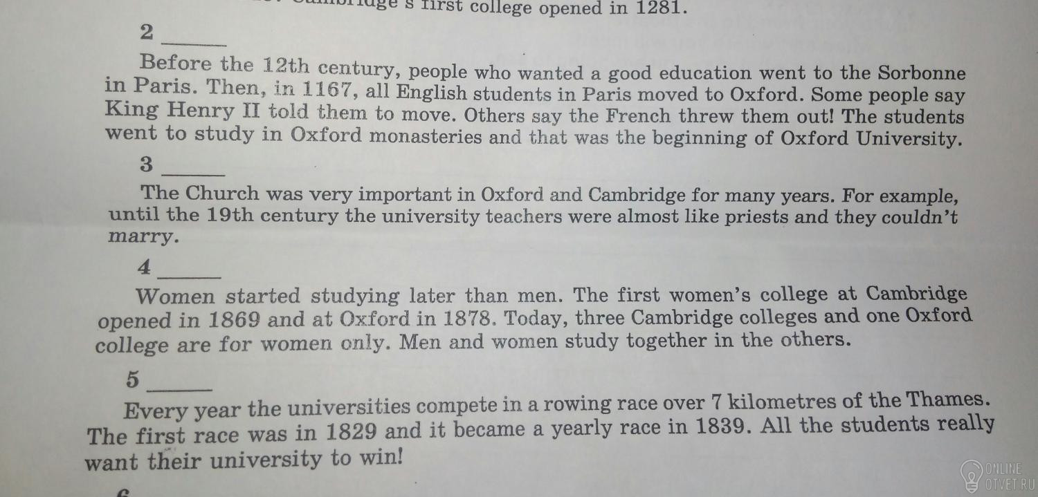 2. До 12 века люди, хотевшие хорошее образование поступали в Сорбон в Париже. Тогда, в 1167, все Английские студенты переехали в Оксфорд. Некоторые люди говорят,что Король Генри 2 сказал им переезжать. Другие говорят, что французы их выгнали! Студенты уехали учиться в Оксфордские Монастыри и это было началом Оксфордского Университета.