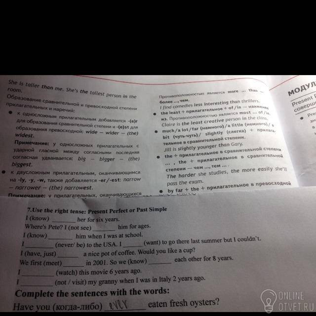 Не нашли подходящего ответа на вопрос или ответ отсутствует? Воспользуйтесь поиском по сайту, чтобы найти все ответы на похожие вопросы в разделе Английский язык.