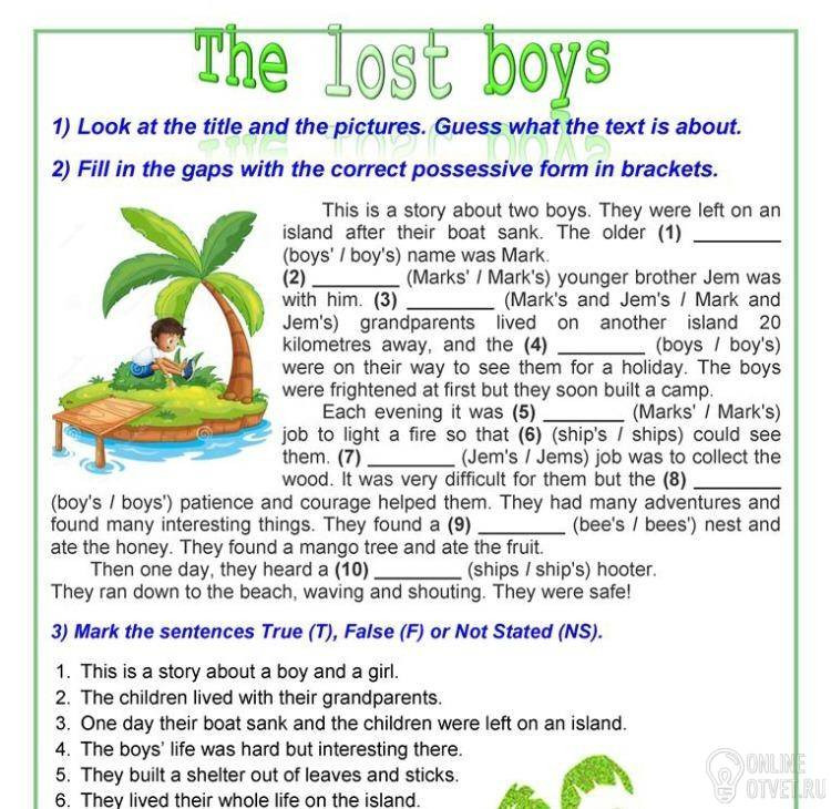 1 boy’s 2 Mark’s 3 Mark and Jem’s 4 boys 5 Mark’s 6 ships 7 Jem’s 8 boys’ 9 bees’ 10 ship’s