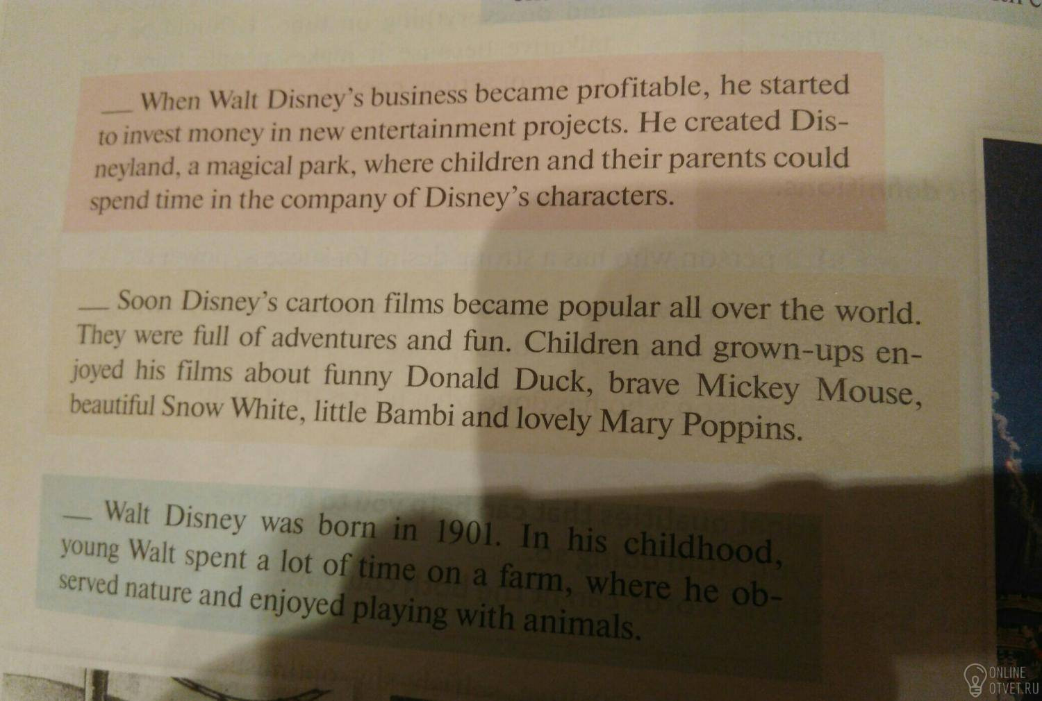 Когда бизнесс Волта Диснея стал окупаемым,он начал инвестировать деньги в новые развлекательные проекты.Он создал Диснейленд,магический парк,где дети и их родители должны проводить время в компании персонажей Диснея