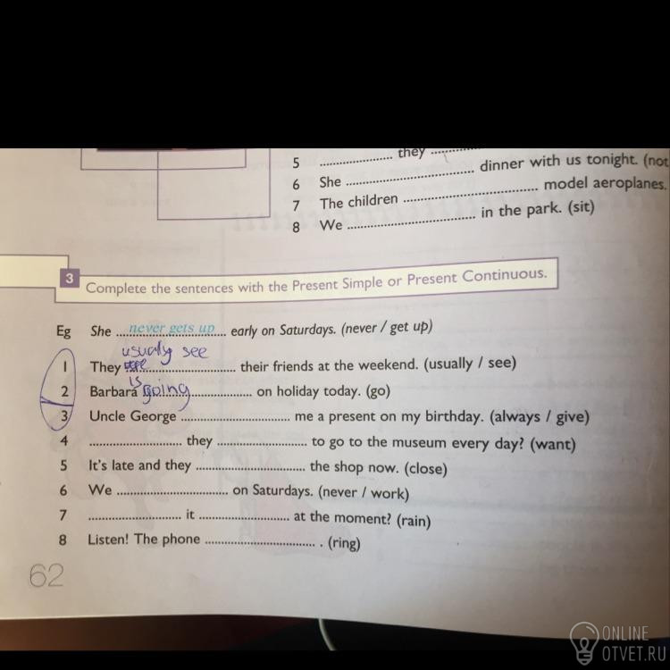 1.They usually see....2)Barbara goes...3)always gives 4) do they want 5) close 6) never work 7) does it rains