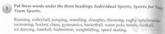 Sports for Two: draughts synchronous swimming chess tennis ice dancing badminton