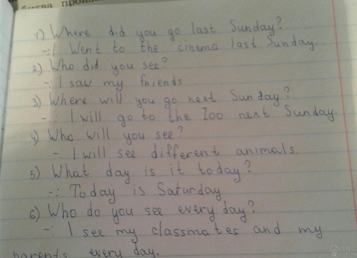1) Куда ты ходил прошлым воскресеньем?
