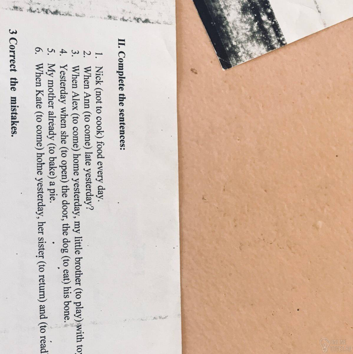 1. Doesn't cooks. 2. Came. 3. Came, playing. 4. Opened, eating. 5. Baked. 6. Came, returned and reading.