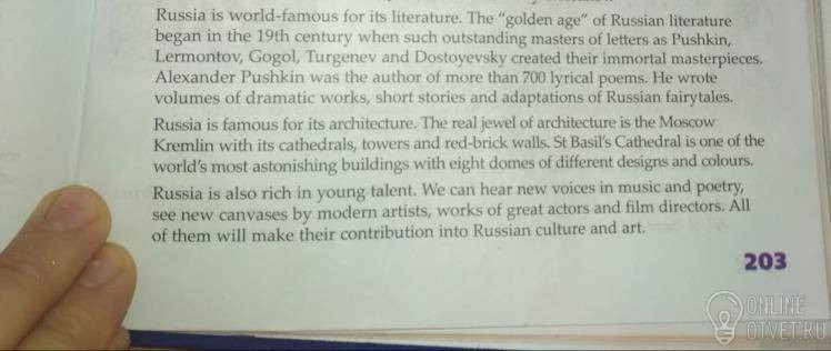 Раша из олсоу рич ин янг тэлэнт. Уи кэн хиа нью войсэз ин мьюзык энд поэтри, сии нью кэнвэйсес бай модэн атистс, уоркс ов грэйт экторс энд филм дайрэкторс. Ол ов зэм уил мэйк зэа контрибьюшн инту Рашн калчэ энд арт.
