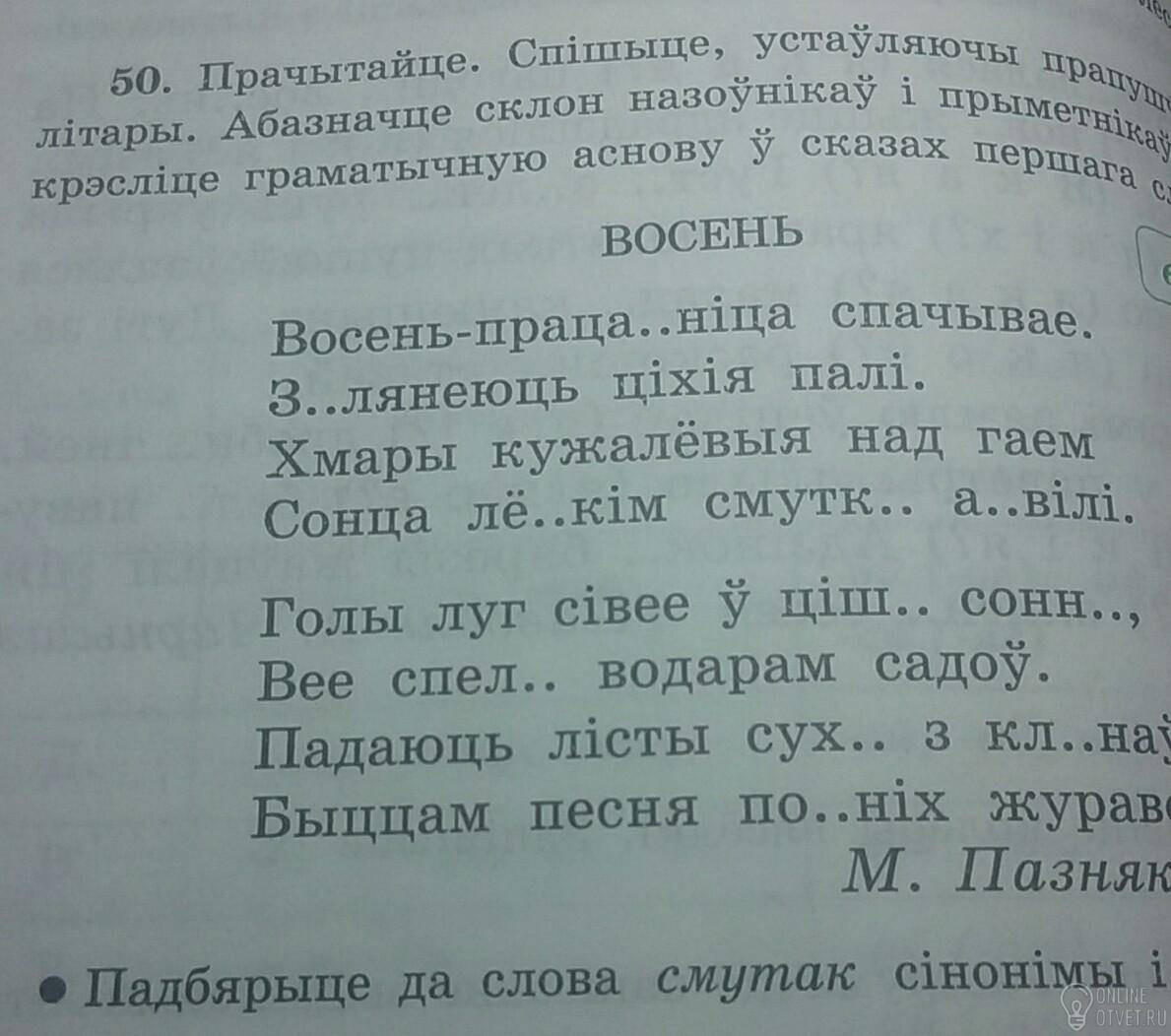 Не нашли подходящего ответа на вопрос или ответ отсутствует? Воспользуйтесь поиском по сайту, чтобы найти все ответы на похожие вопросы в разделе Беларуская мова.