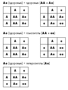 Больные потомки (генотип аа) будут во всех случаях.