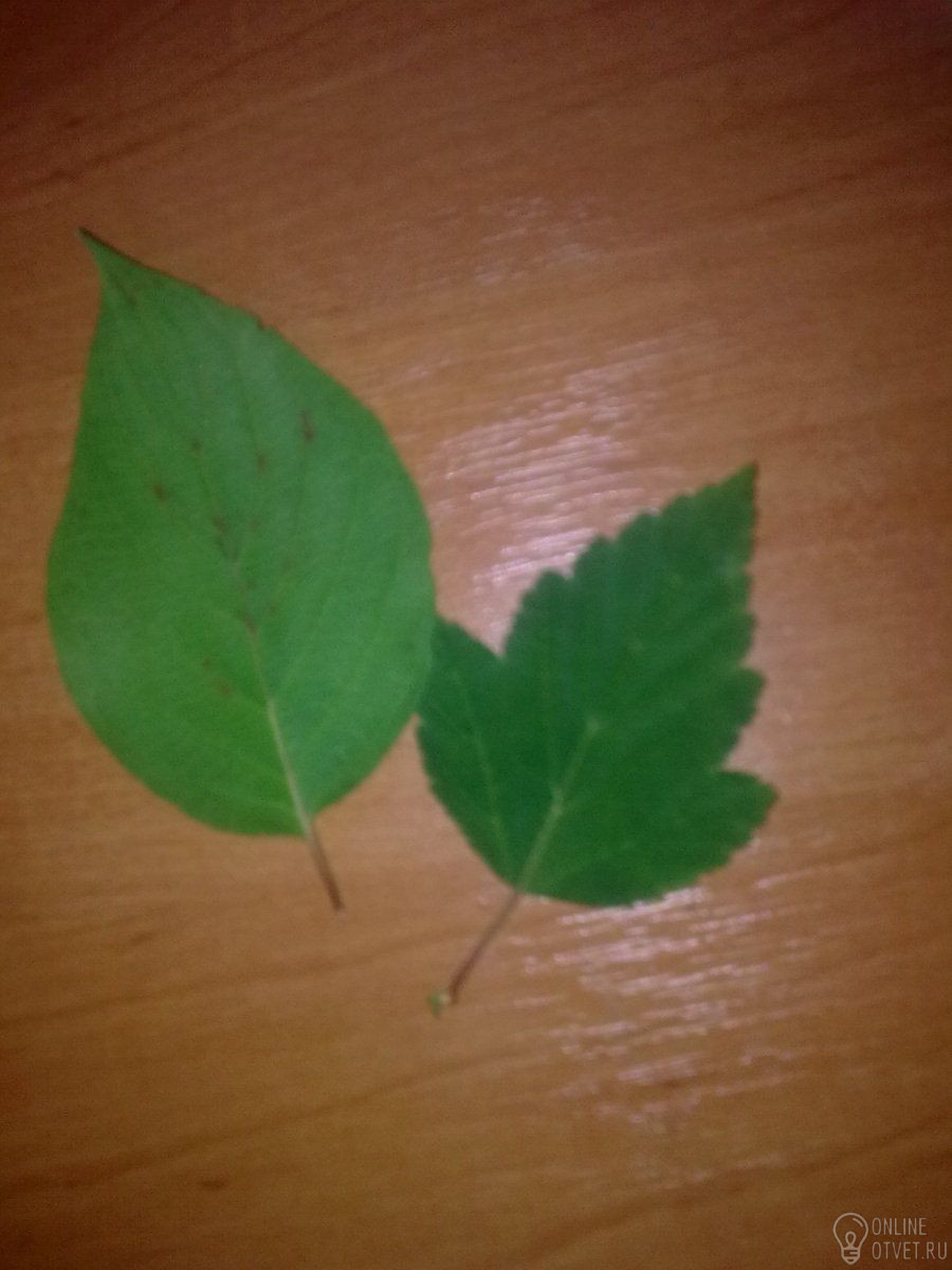 Первый лист имеет цельную форму листа, а второй зубчатую форму листа.