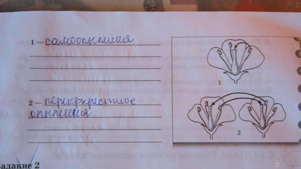 Перекрестное опыление тип при котором пыльца от андроцея одного цветка переносится на рыльце пестика другого цветка.Самоопыление При самоопылении пыльца из пыльников переносится на рыльце пестика того же самого цветка или между цветками одного растения.