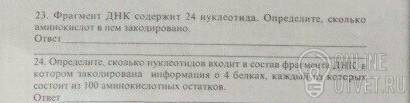23. ФРАГМЕНТ ДНК СОДЕРЖИТ 24 НУКЛЕОТИДА, 3 НУКЛЕОТИДА СОСТАВЛЯЮТ 1 АМИНОКИСЛОТУ, ЗНАЧИТ