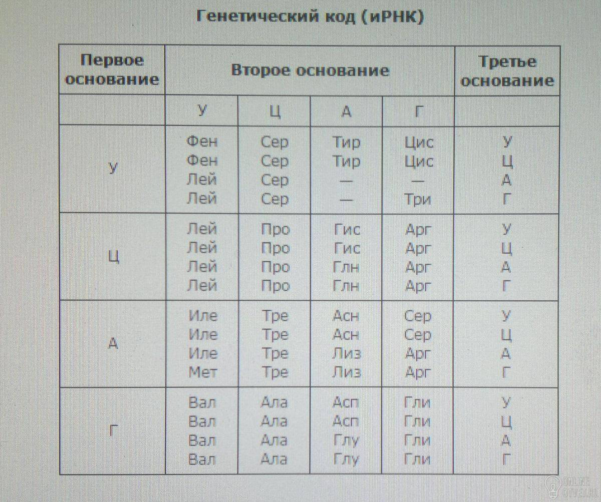 У Вас в таблице И-РНК, значит пишем код этой молекулы: