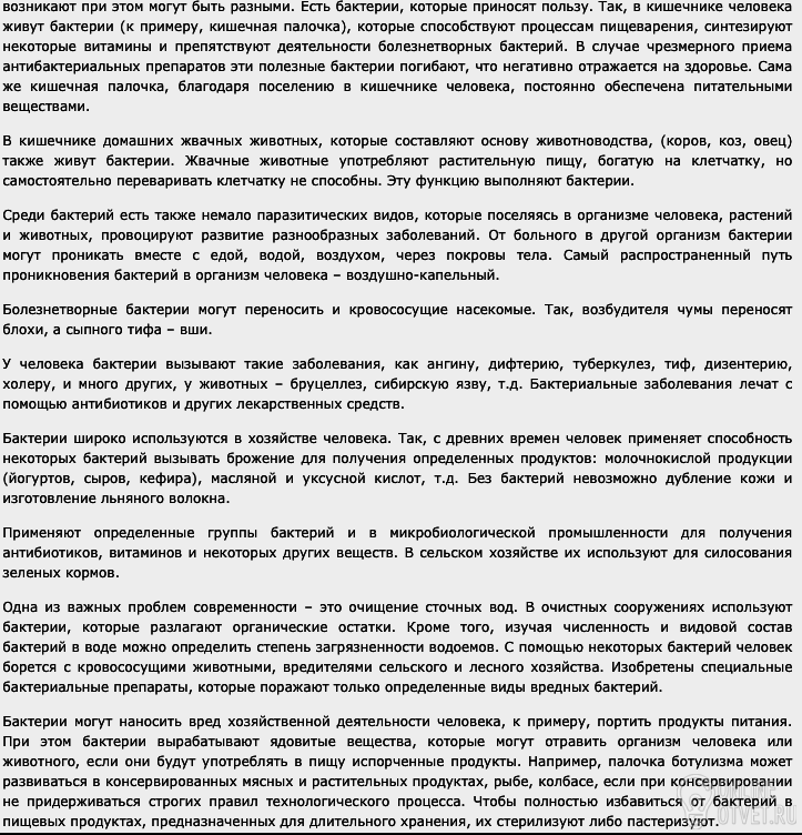 Бактерии - это примитивные одноклеточные живые организмы. Они есть везде: Внутри других организмов ( Животных, растениях, человеке) или на поверхности. В большем количестве встречаются в почве, водоёмах. Прямо или косвенно бактерии играют важную роль в жизни человека. Как я уже говорила, бактерии обитают не только в почве и водоёмах, но и в живых организмах, и в человеке в том числе.