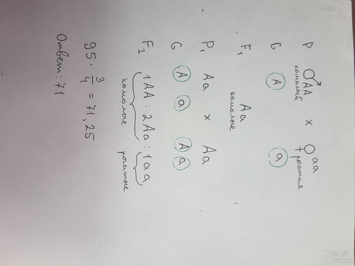 От скрещивания комолого быка айширской породы с рогатыми коровами в F1 и получили 18 телят(все комолые), в F2-95. Каково количество комолых телят в F2?