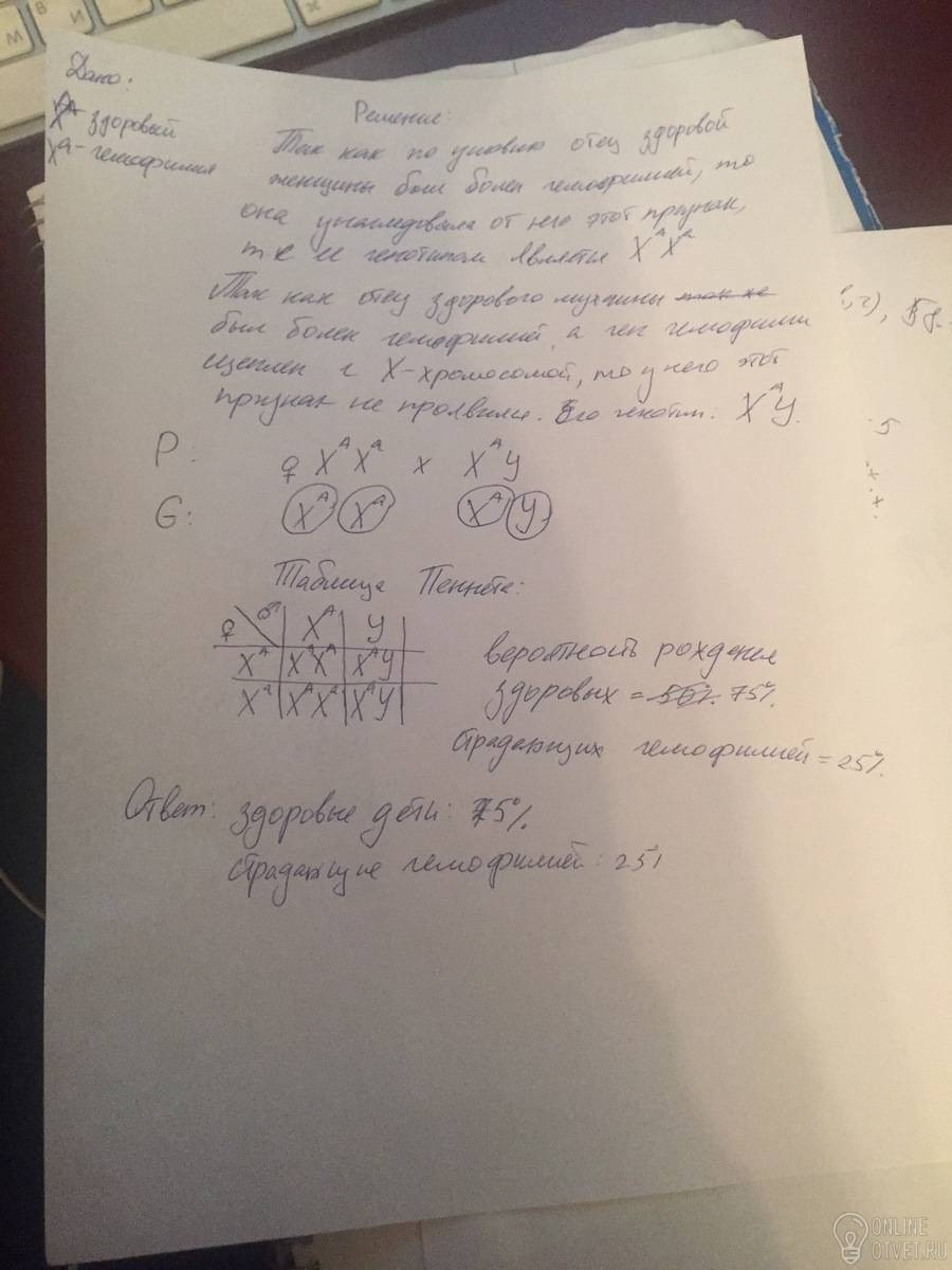 Ответ:1)вероятность рождения детей больных гемофилией=25%